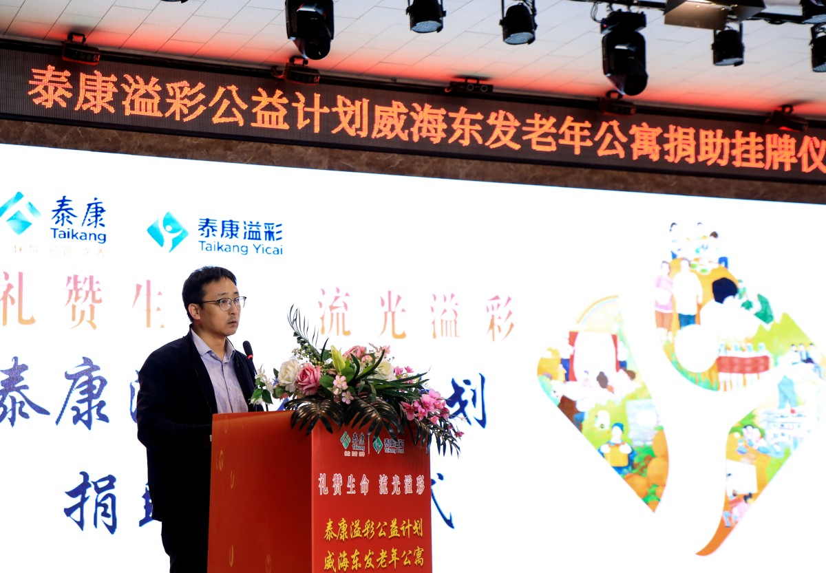 威海保險行業(yè)協(xié)會副秘書長白如和對泰康溢彩項目落地威海表示祝賀,對泰康支持地方養(yǎng)老業(yè)發(fā)展給予充分肯定。并表示,“老吾老以及人之老”,尊老敬老是中華民族的傳統(tǒng)美德。泰康的愛心捐贈是對社會老齡化問題的一次積極回應(yīng),也是對老年人生活品質(zhì)提升的承諾,泰康為金融保險業(yè)做出了公益典范。希望更多企業(yè)和機(jī)構(gòu)積極踐行企業(yè)社會責(zé)任,關(guān)注關(guān)愛老年人,推動公益事業(yè)發(fā)展。