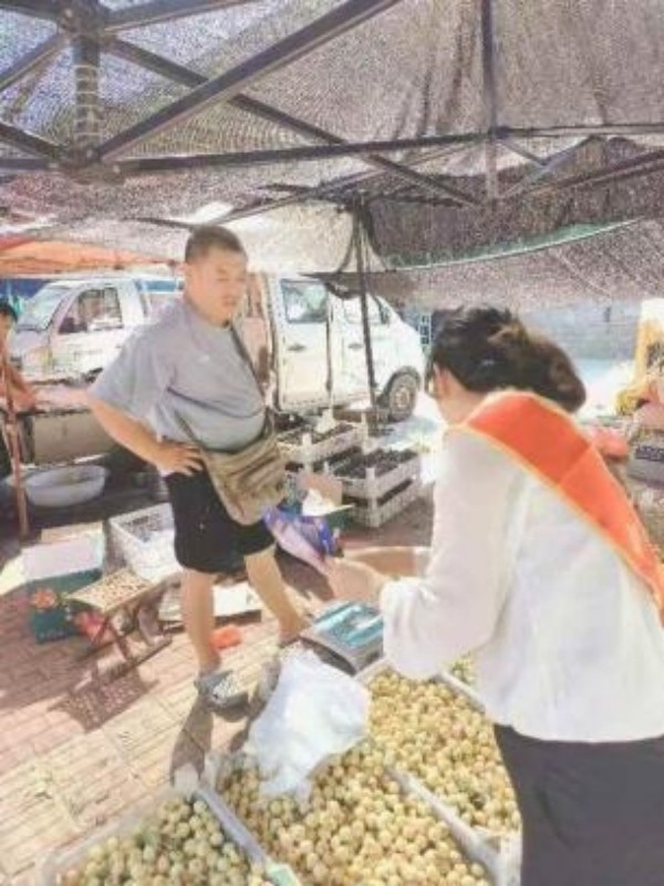 太平人壽文登服務(wù)部工作人員,正手持宣傳手冊,耐心地向一位攤主大爺講解如何識別非法集資的陷阱,大爺聽得津津有味,不時點頭表示贊同。
