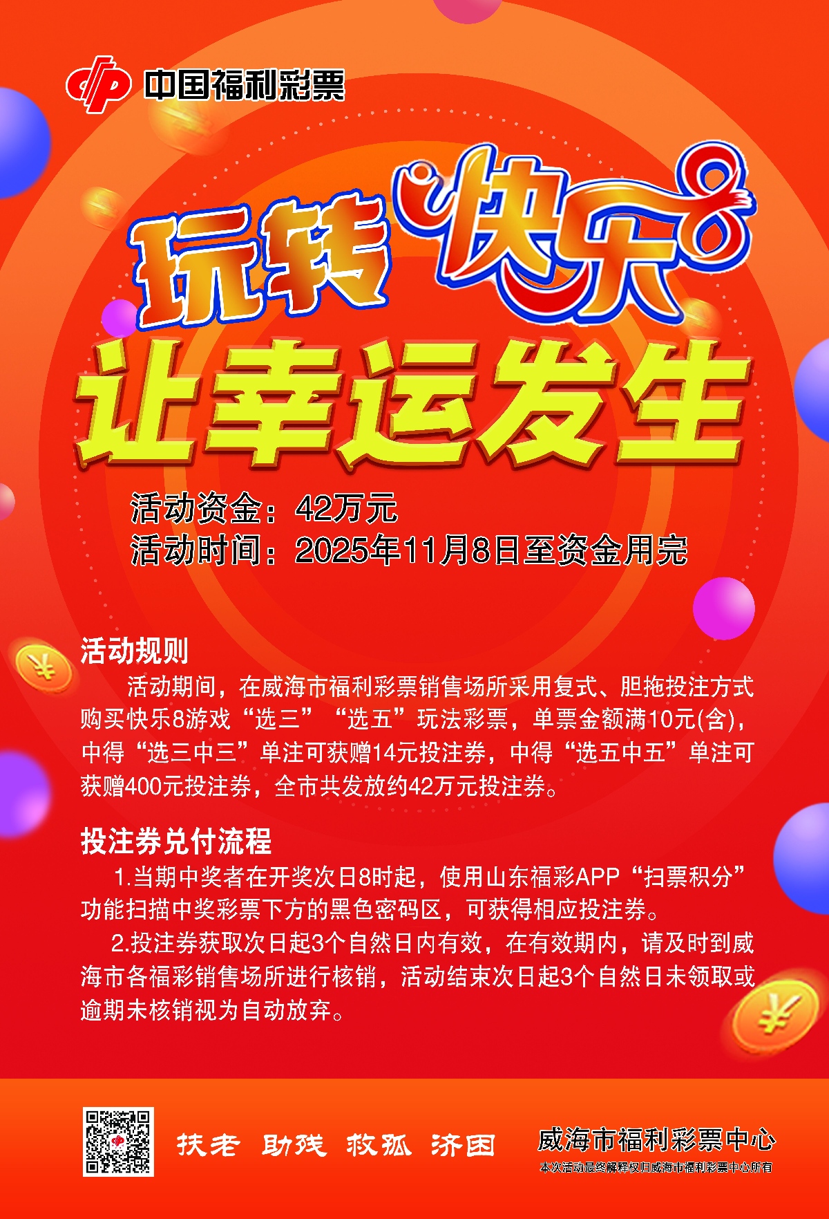 威海福彩“快樂8”營銷,11月8日開啟,選三、選五玩法獎上加獎