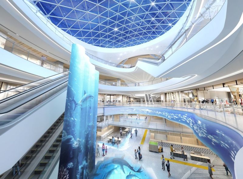 鯤鵬水擊,浩浩湯湯。威海灣城市綜合體以“鯨魚出?!睘殪`感,其中“鯨脊”部分為大跨度拱結(jié)構(gòu)配合預(yù)應(yīng)力空心樓板構(gòu)成,為全國首創(chuàng),其背后蘊含的包容、博愛、拼搏等海洋文化,也為該項目增添了學(xué)養(yǎng)深厚的極致韻味。定位城市功能新提升、城市形象重塑造的威海灣城市綜合體,致力于創(chuàng)造一個多元化的現(xiàn)代城市商業(yè)空間。