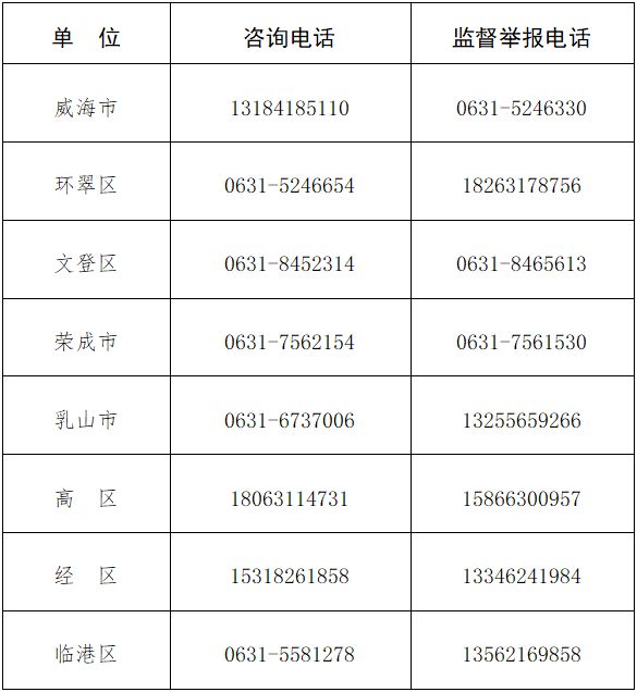 威海市征兵業(yè)務咨詢、監(jiān)督舉報電話