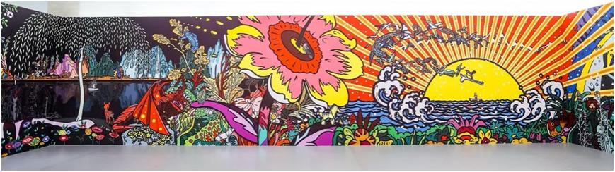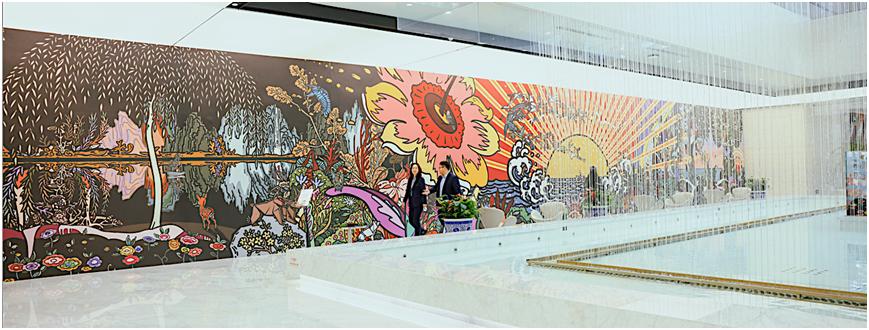 作為一次金融與藝術(shù)深度融合的跨界合作,該展覽展出了卜樺兩部四十多米長的巨幕數(shù)字藝術(shù)作品《重逢2025》、《宇宙花園二》以及26米美術(shù)館級數(shù)字藝術(shù)壁畫《奇跡般》等作品,并以其作品中明艷絢麗的色彩和豐富繁茂的自然意象為靈感來源,設(shè)計制作了多個立體造型裝置,在視覺上為觀眾構(gòu)建一個美好奇妙的數(shù)字花海,觀眾可沉浸式置身其中打卡拍照,體驗世博會未來館導(dǎo)演、國際知名藝術(shù)家卜樺創(chuàng)造的精神花園。