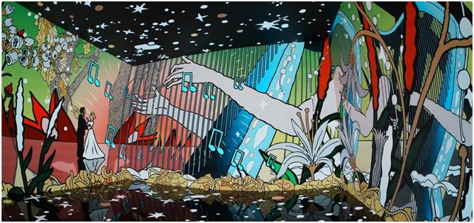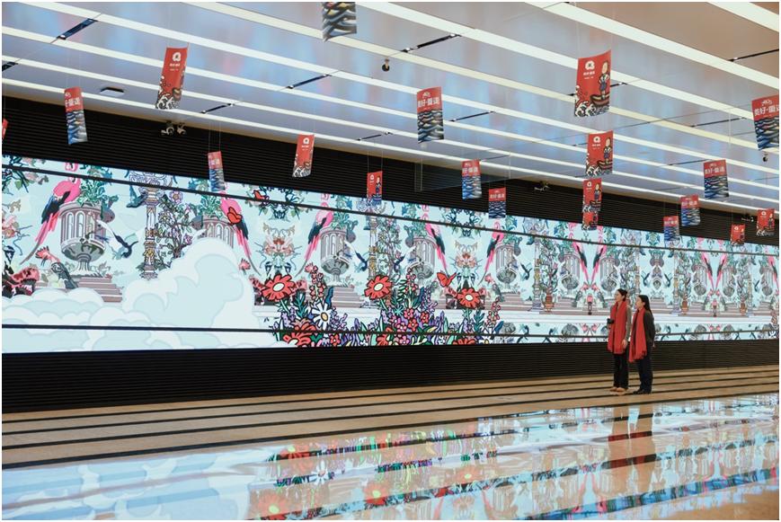 巨型數(shù)字藝術(shù)壁畫——“奇跡般” 長達 26 米的巨型數(shù)字藝術(shù)壁畫《奇跡般》,營造沉浸式的體驗空間。奇炫之花與異種植物共生,主角颯蜜身著白衫藍裙、系著紅領(lǐng)巾,在光影變幻中駕舟而來,帶你進入神秘的奇跡世界。