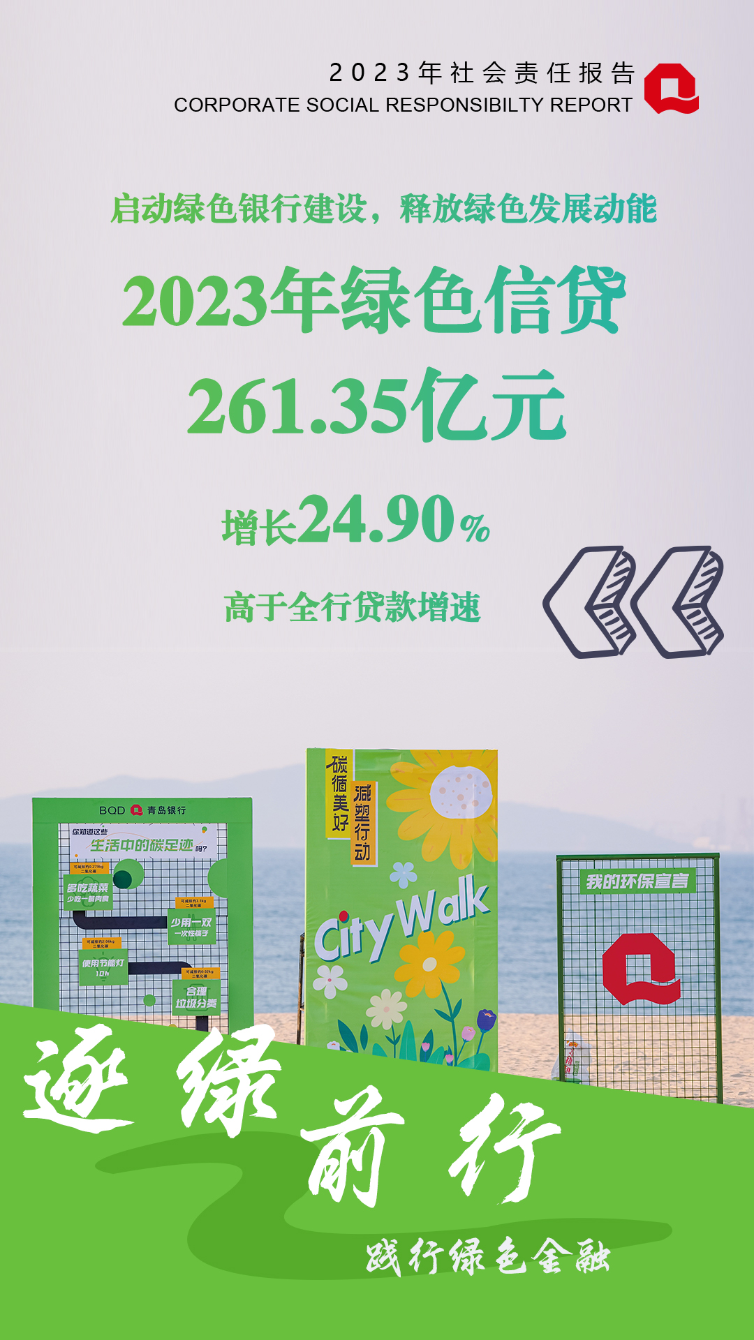 堅(jiān)持生態(tài)優(yōu)先、綠色發(fā)展理念,2023年,青島銀行加大綠色金融產(chǎn)品創(chuàng)新,著力深耕降本增效賽道,努力擦亮“綠色銀行”名片,釋放綠色發(fā)展動能,賦能本行高質(zhì)量發(fā)展。