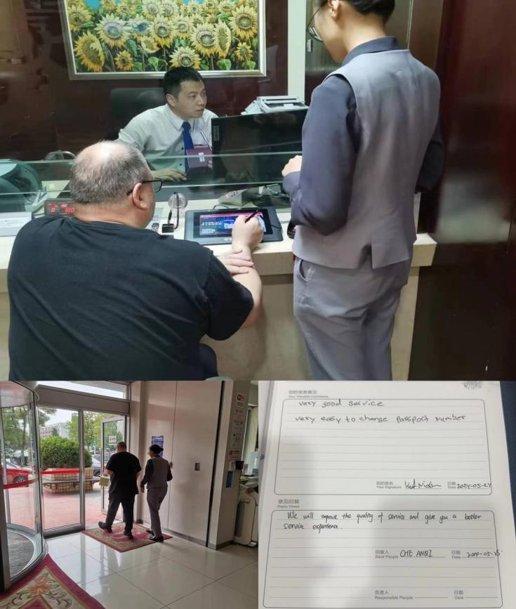 通過高效便捷的開戶流程,十分鐘光景,客戶便成功辦理了儲蓄卡開戶業(yè)務,在開卡過程中該行廳堂經(jīng)理不間斷的向客戶介紹外國人便利化支付內(nèi)容,專業(yè)又熱情的服務,獲得了客戶高度滿意和評價:“Thank you so much!Professinal!”并向工作人員豎起了大拇指,并在我行客戶留言薄上寫下自己感謝之詞,表示將來會繼續(xù)選擇招商銀行辦理業(yè)務。