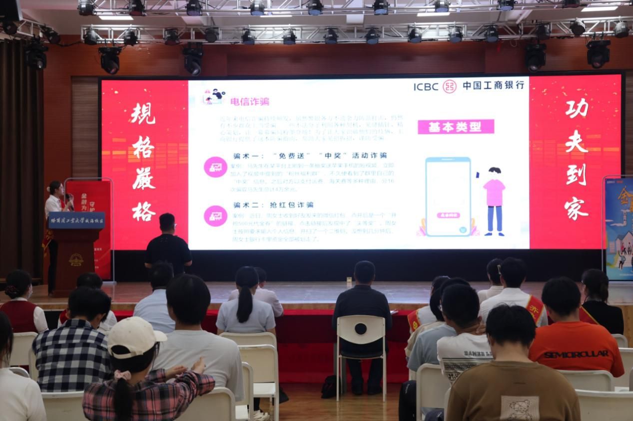 為進(jìn)一步落實(shí)金融教育“五進(jìn)入”,提升大學(xué)生金融素養(yǎng),9月25日,由威海金融監(jiān)管局、威海市銀行業(yè)協(xié)會(huì)、威海市保險(xiǎn)行業(yè)協(xié)會(huì)主辦,工商銀行威海分行、中信銀行威海分行、中信銀行信用卡中心、齊魯銀行威海分行、威海農(nóng)商銀行、太平人壽威海中支等6家金融機(jī)構(gòu)協(xié)辦的“金融為民譜新篇 守護(hù)權(quán)益防風(fēng)險(xiǎn)”2024年“金融教育宣傳月”活動(dòng)走進(jìn)哈爾濱工業(yè)大學(xué)(威海校區(qū)),為在校學(xué)生帶來了一場(chǎng)金融知識(shí)的盛宴。